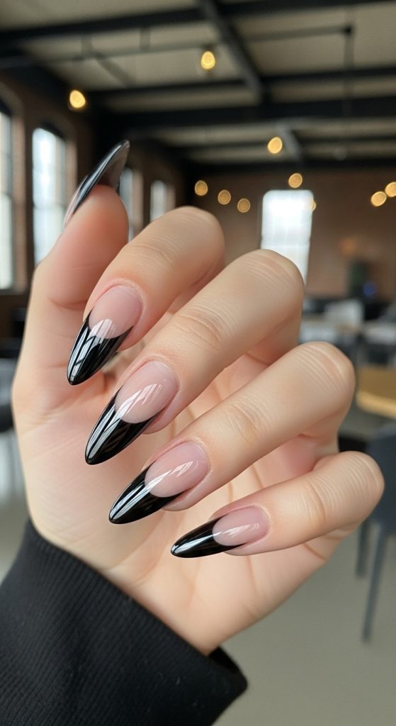 Edgy yet sophisticated, black chrome tips are perfect for anyone who wants to stand out. The glossy metallic finish gives them a futuristic vibe while still keeping the French manicure shape.