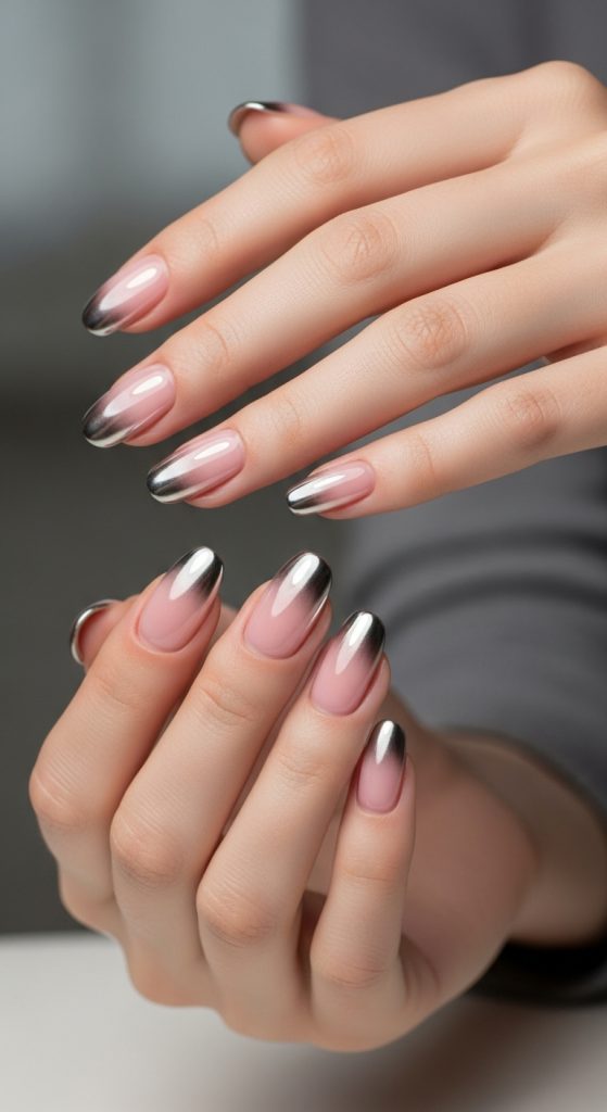 Instead of a sharp line, blend your chrome tips into the base with a soft ombre effect. This gives a smoother, more modern twist on the French manicure.