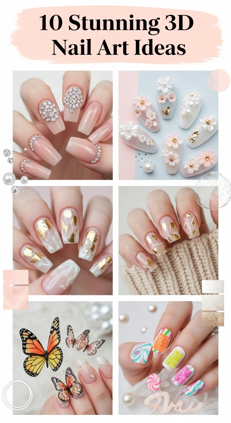 If you’re ready to take your nails from basic to breathtaking, 3D nail art is the trend to try. It adds texture, volume, and a wow-factor that’s perfect for special occasions — or simply to express your bold style. Here are 10 unique 3D nail inspirations to elevate your manicure game. 1. Crystal Cluster Tips …